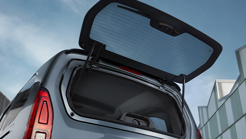 La ventana trasera practicable en el portón permite un acceso rápido y cómodo al compartimento de carga, ideal para rutinas dinámicas en las que la practicidad marca la diferencia.